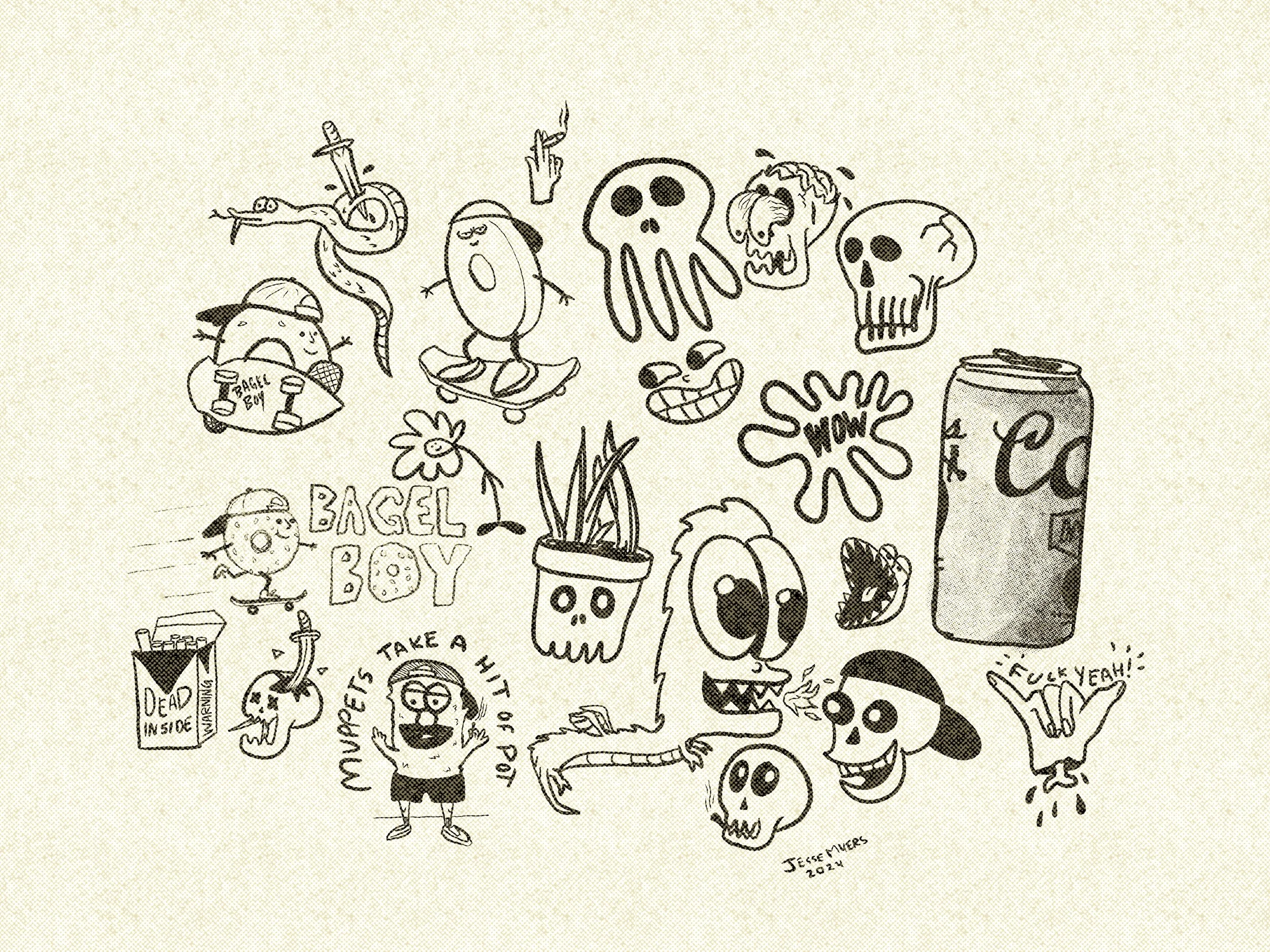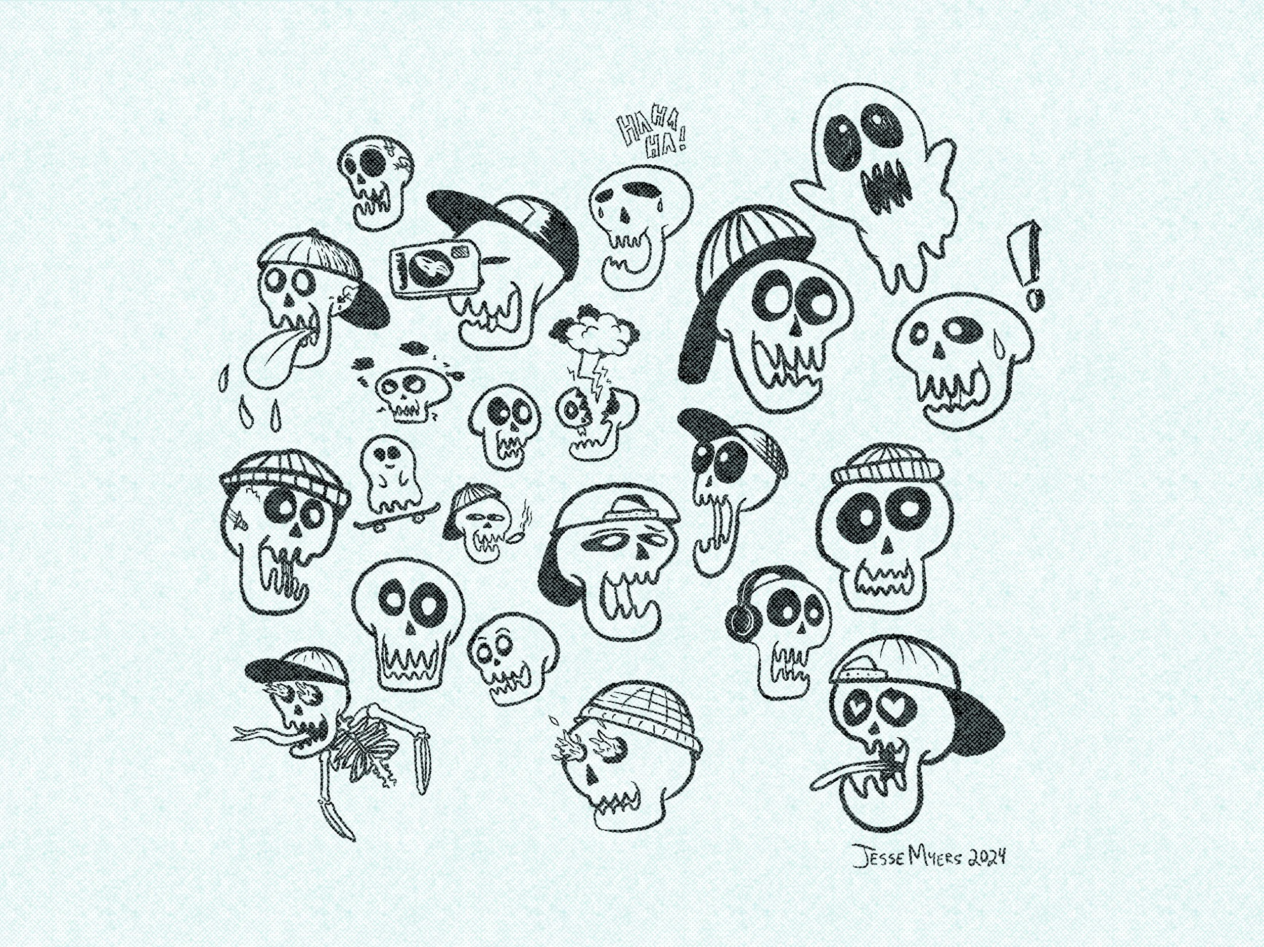 At the end of the day, my favorite way to make art is to draw skeletons and skulls and anything that looks like it might be put on a skateboard. enjoy my doodles, drawings, and illustrations here. :)
